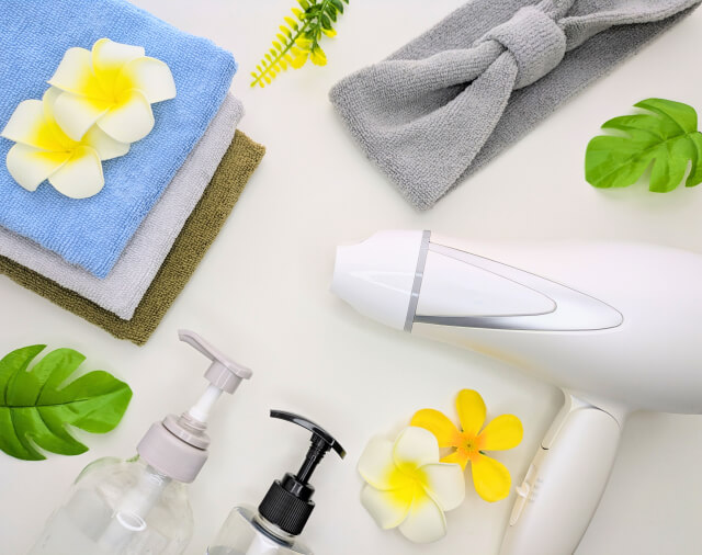 | シャンプー・布・ぬるま湯・ドライヤー | 水を使いすぎない |